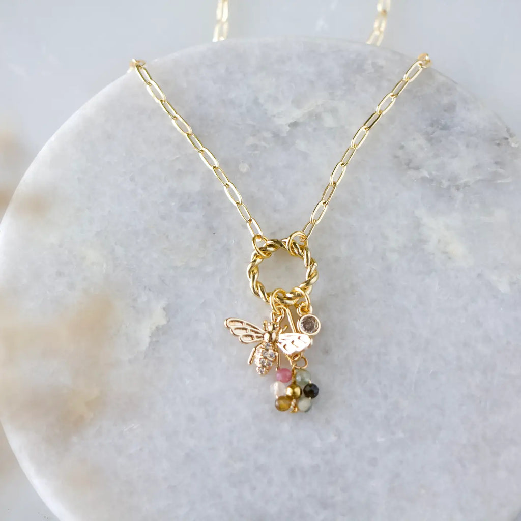 Tourmaline Flower Cz Queen Bee Charm Necklace