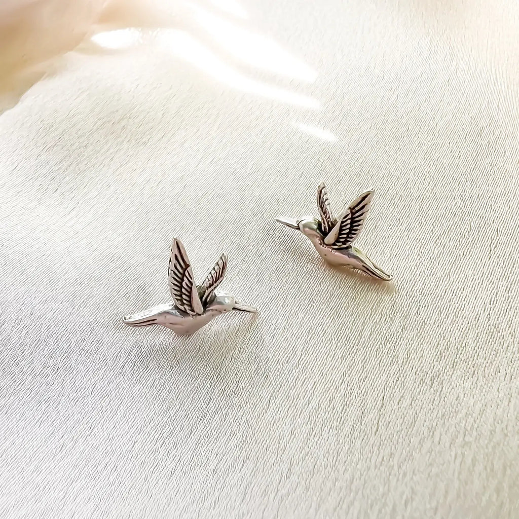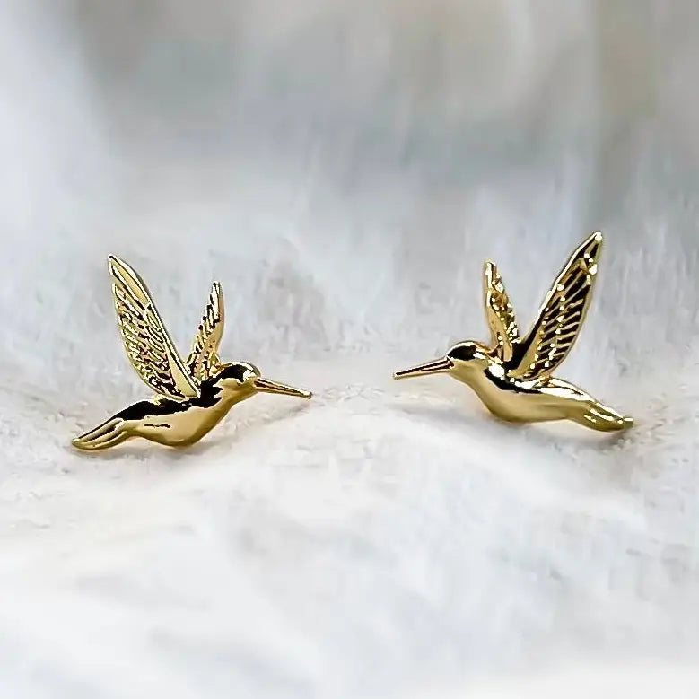 These antique silver or gold plated brass hummingbird stud earrings add a dainty touch to any outfit. The 15x13 mm size is perfect for everyday wear.