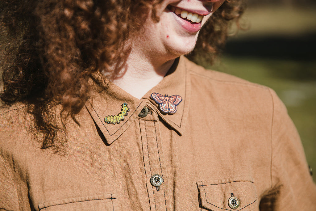 Cecropia Moth and Caterpillar Enamel Pin Set