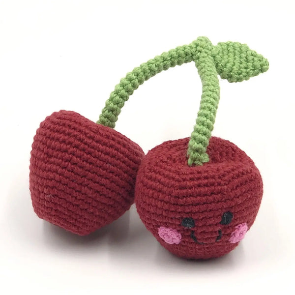 These happy little baby toys brings a bright pop of color to the nursery and a promise of spring. They are the right size for tiny hands to grab and the rattle inside gives a very soft jingle when shaken.