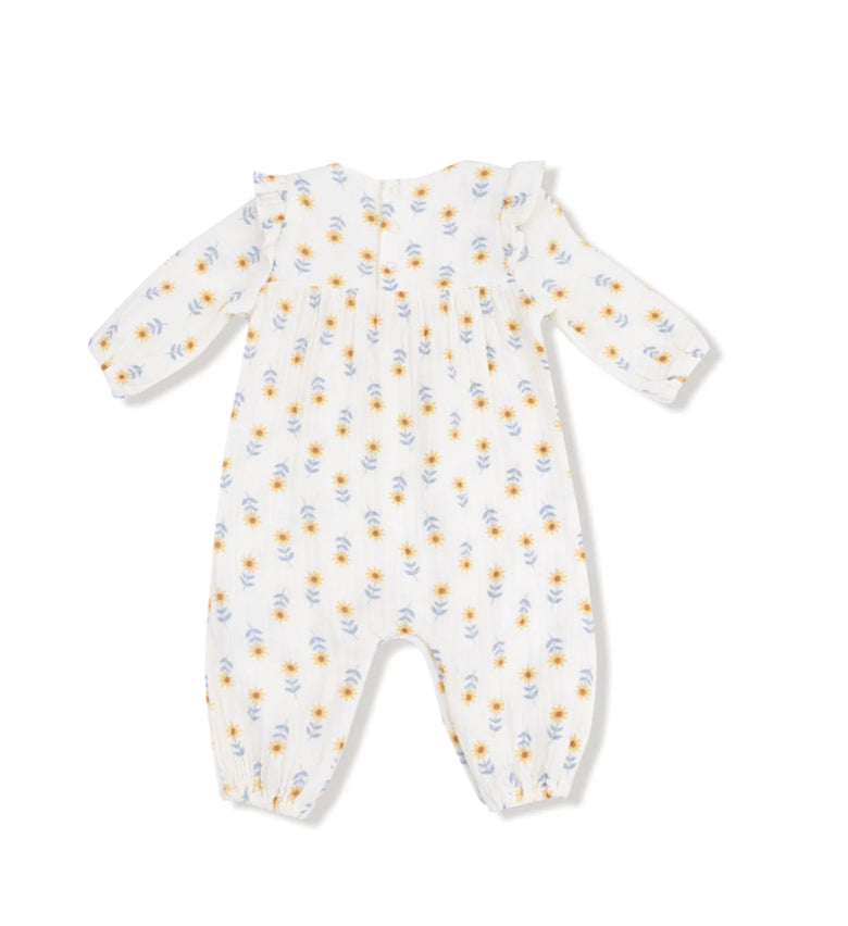 Western Sunflower Ruffle Sleeve Romper